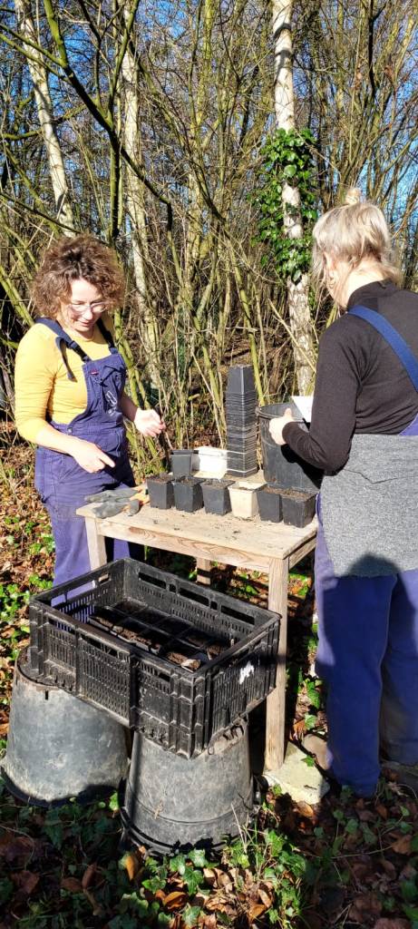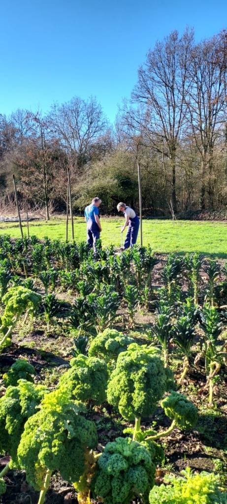 Deze week te oogsten Jahoor, de palmkool krijgt doorschieters (palmkool bimi’s) en die zijn heerlijk en niet te krijgen in de winkel. Knip de doorschieters uit de oksels net als je bij de broccoli bimi doet. Portie: 15-20 bimis pp. Boerenkool staat er ook nog, en de aardpeer. En het wonder van de akker: ondanks de vorst staat er heerlijke bladgroente: de mosterdspinazie is verrukkelijk en heel pittig, evenals de rucola. Pluk van elk wat bladeren om door je salade te doen. De tatsoi schiet ook door en die heeft eveneens heerlijke tatsoi bimis.Pluk ook daar wat van om te mengen door de palmkool bimi’s. In de tweede tunnel staat op het meest rechtse bed de winterpostelein. Yummy, vers groen. Pak een hand en snij het 2-3 cm boven de grond af. Portie: 2 handjes pp. En als kers op de taart: er is weer daslook. In de Chillin weide schuin achter de yurt. Loop voorzichtig tussen de planten, en pluk van verschillende planten wat blad. Portie: 15 bladeren pp.