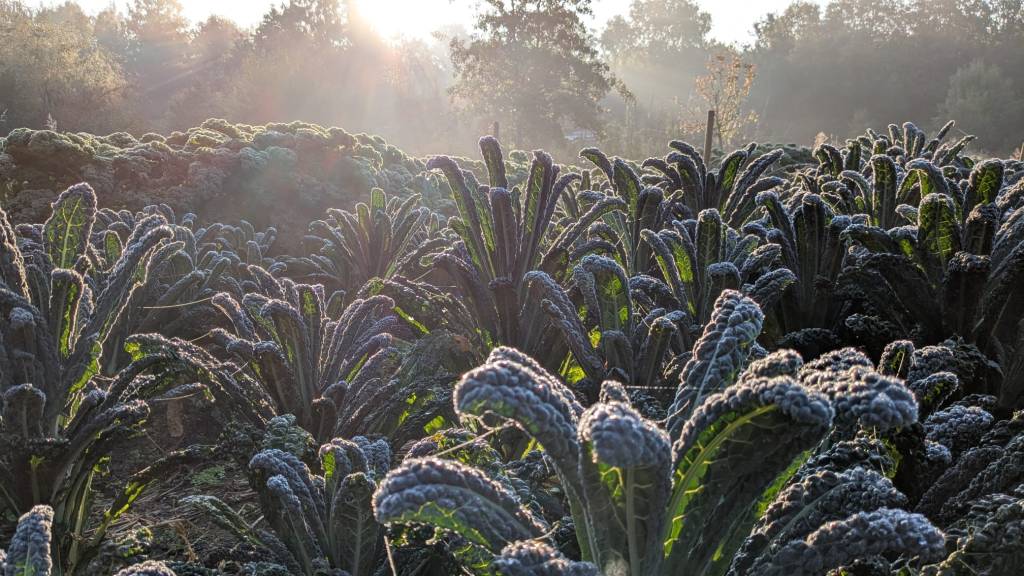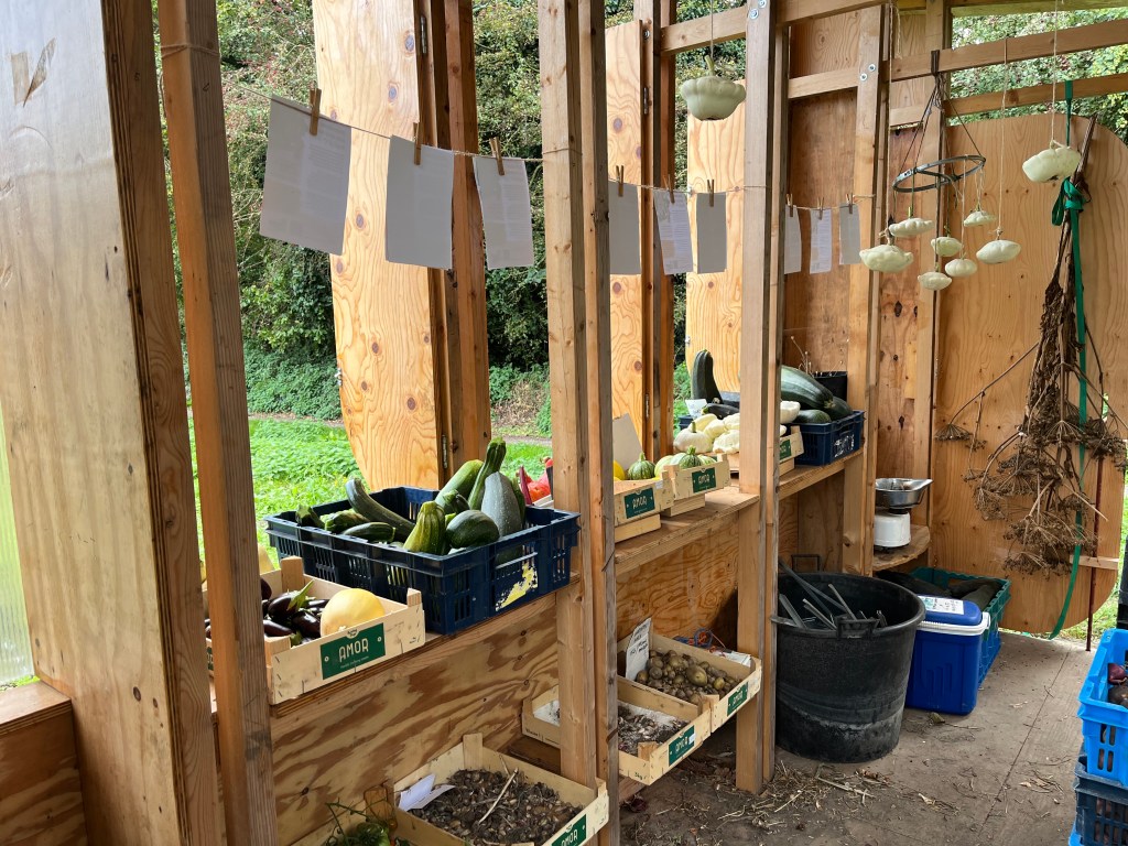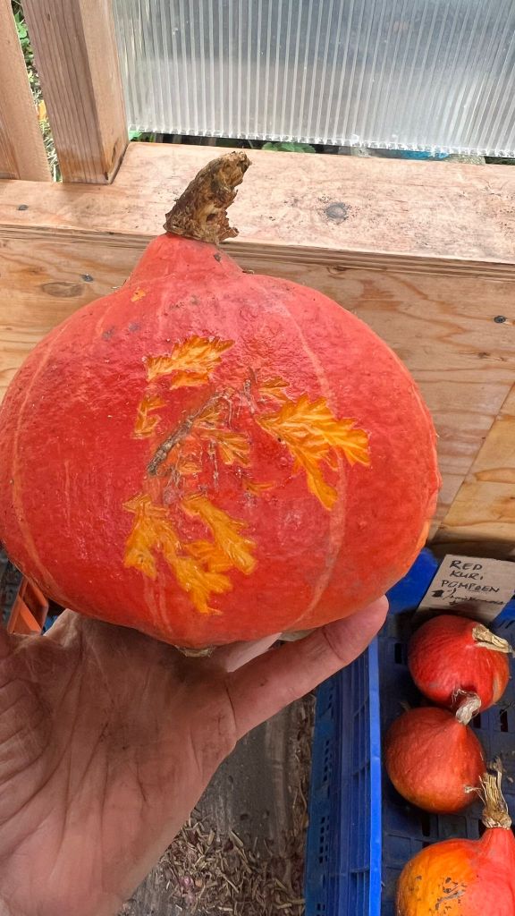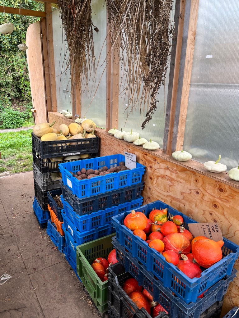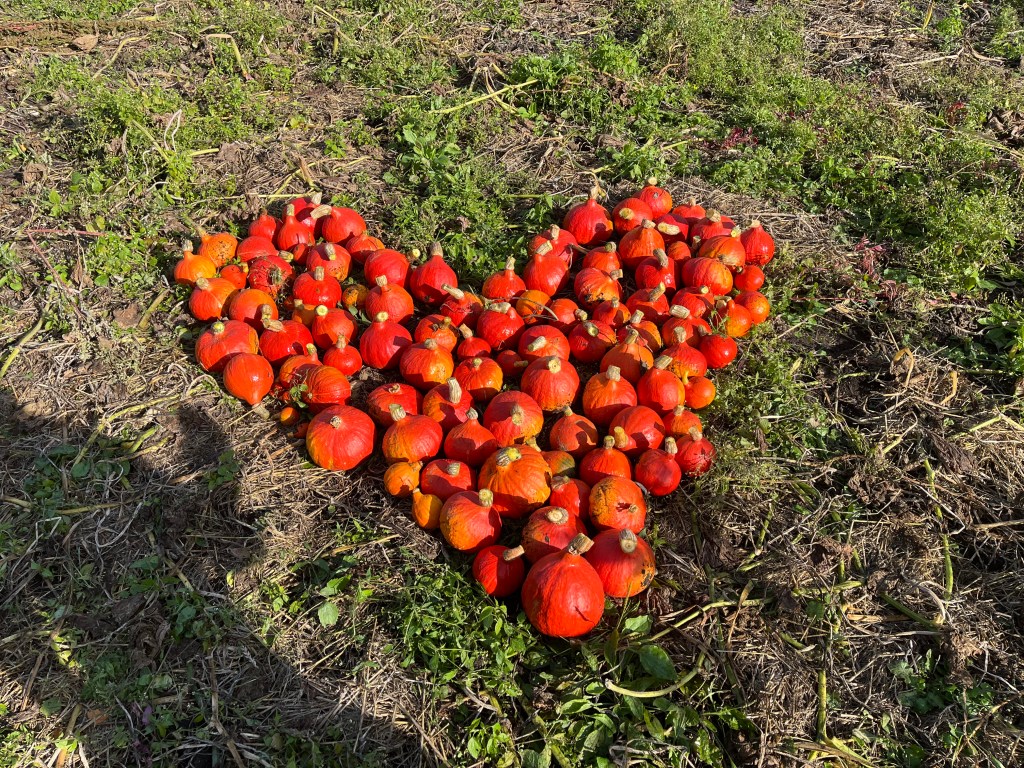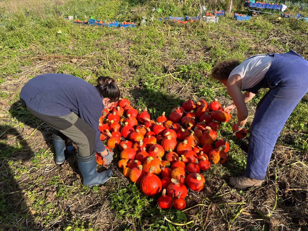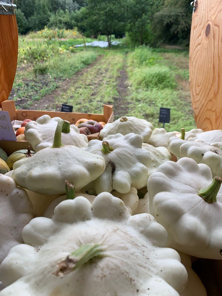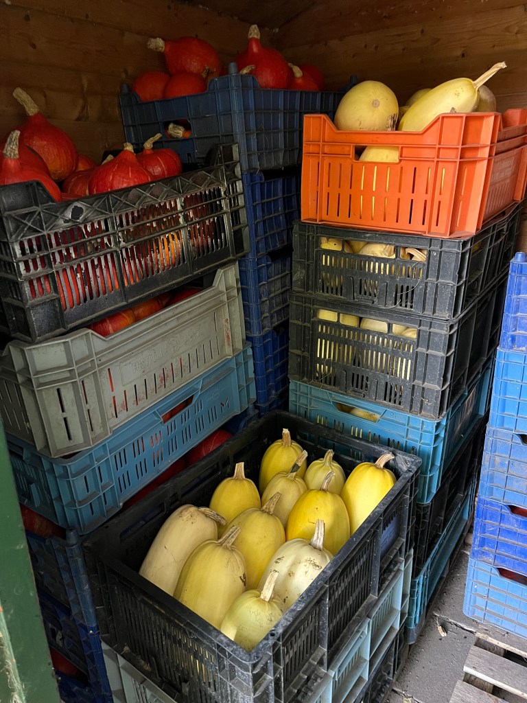 De akkers worden weer lekker overzichtelijk door het weer en onze opruimactiviteiten; eindelijk hebben we de dominantie van het onkruid doorbroken! De zomergroentjes maar ook de bloemen en kruiden geven er langzaam de brui aan, terwijl de wintergroenten er heerlijk vitaal bijstaan. De voorraad Red Kuri pompoen is op, en we zijn begonnen aan de laatste kisten spaghetti pompoenen. Zo te zien aan de voorraad en op de akker, zijn er afgelopen weekend veel oogstgenoten geweest.