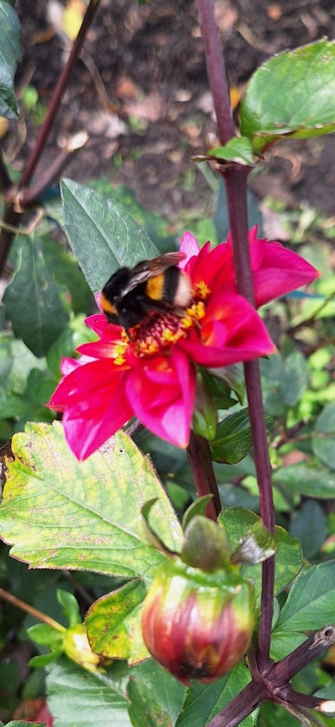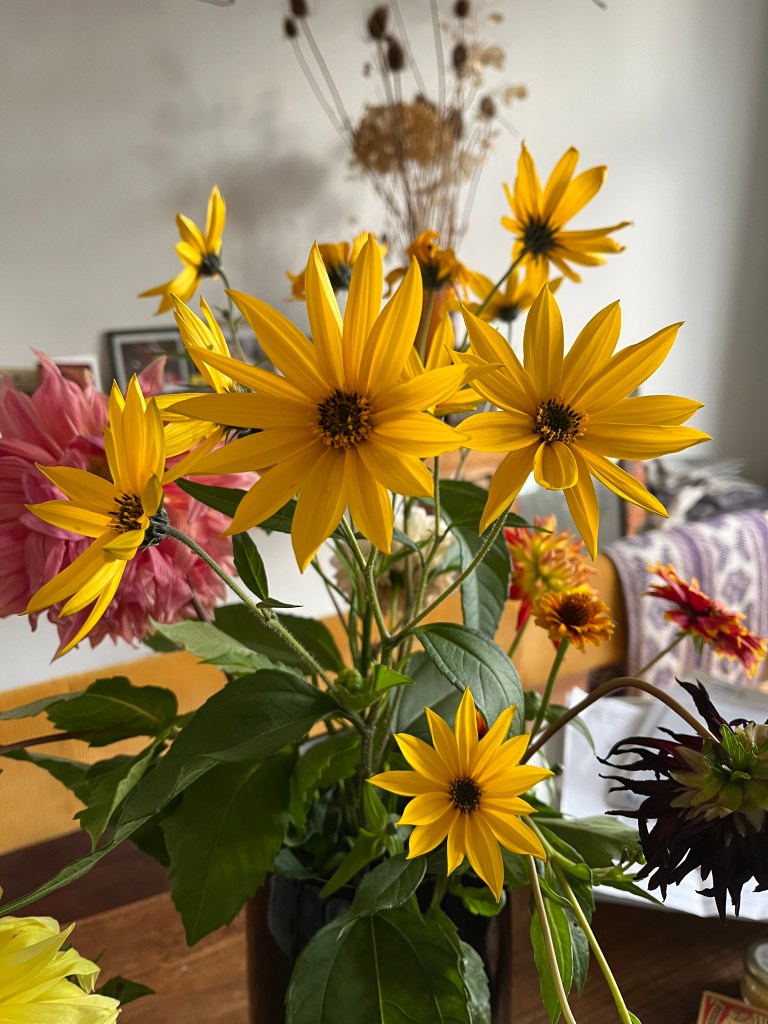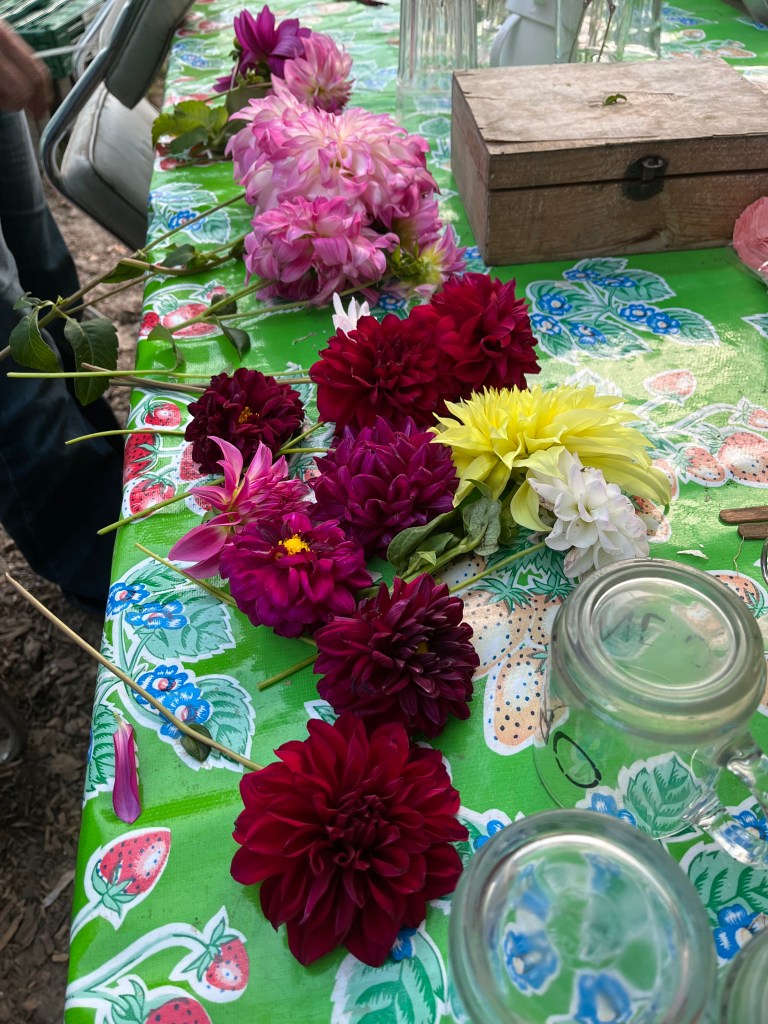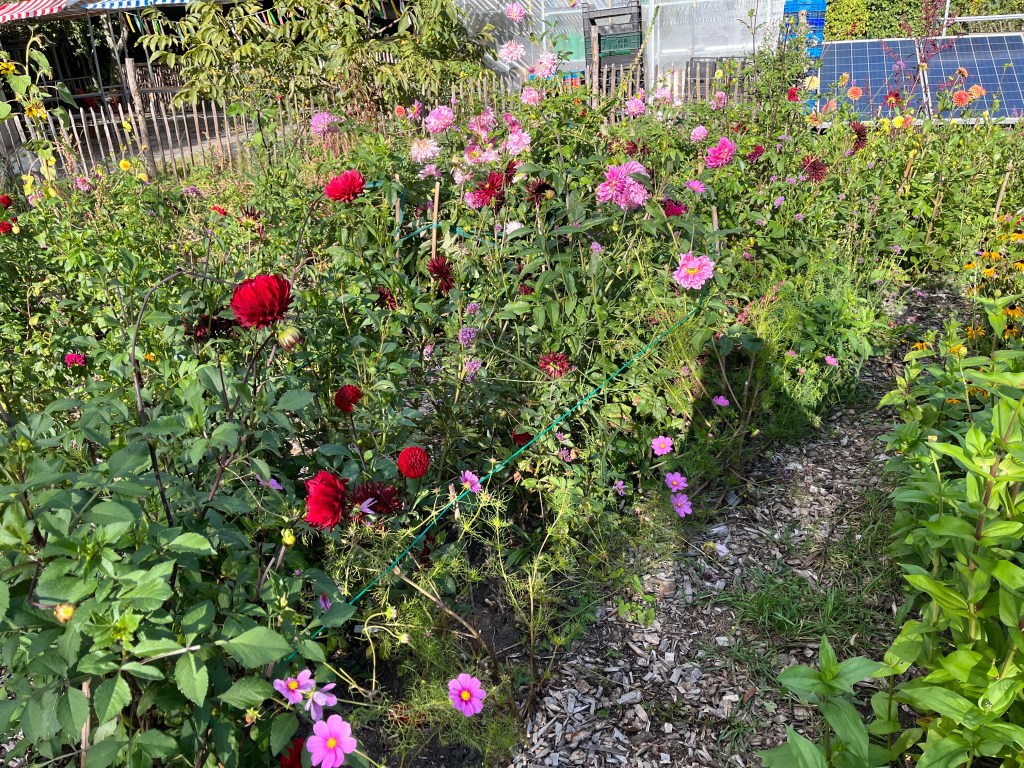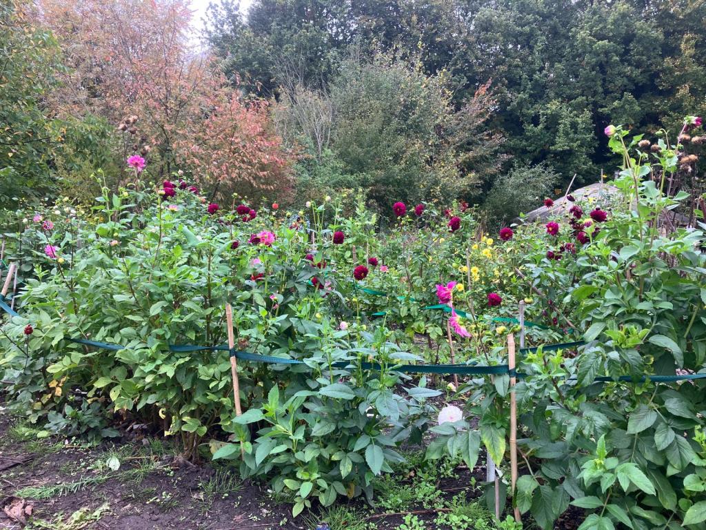Bloemen De dahlia’s en de andere bloemen lopen op hun einde door al die nattigheid. Dus pluk een klein bosje, dan heeft iedereen nog wat plezier.