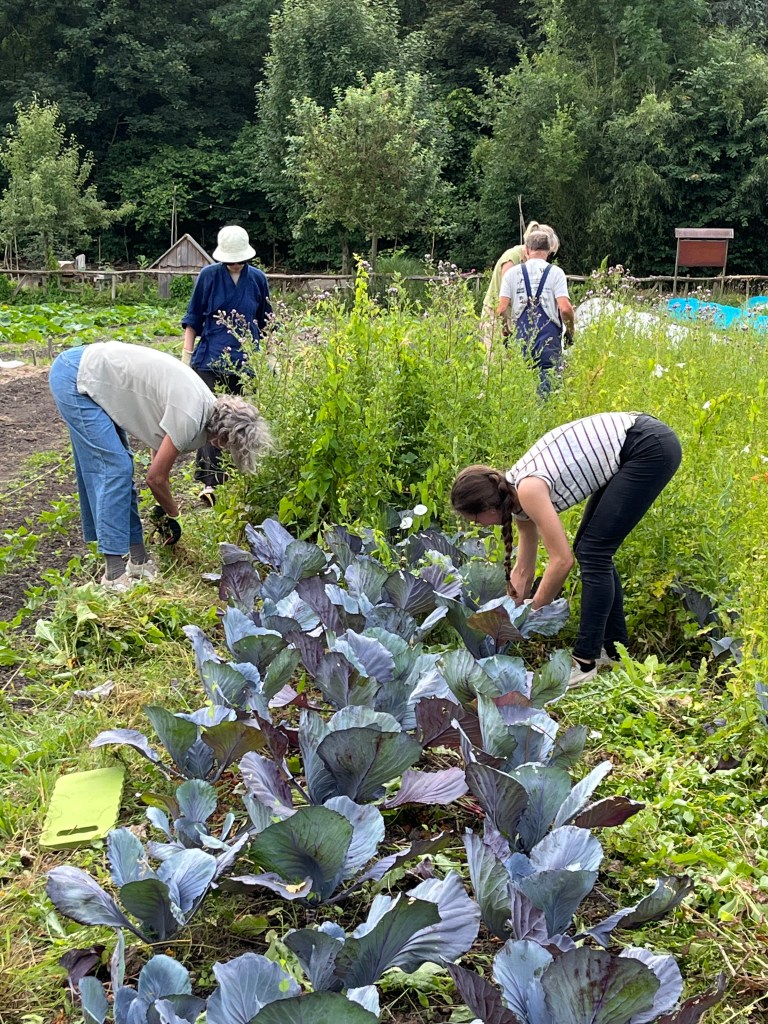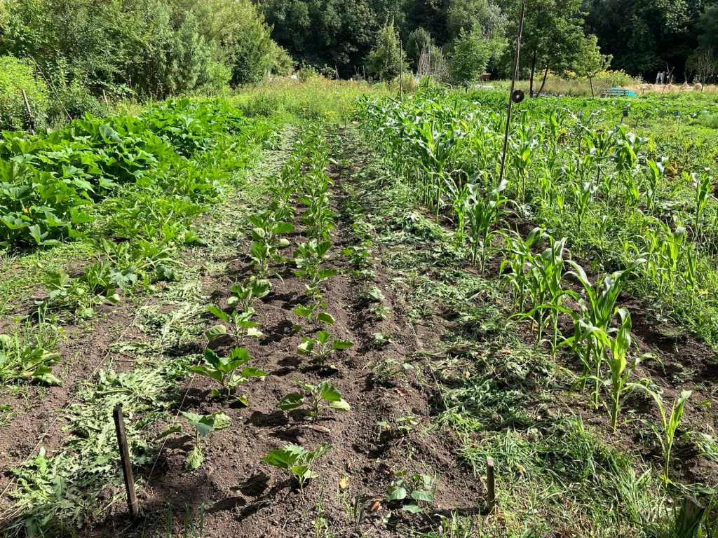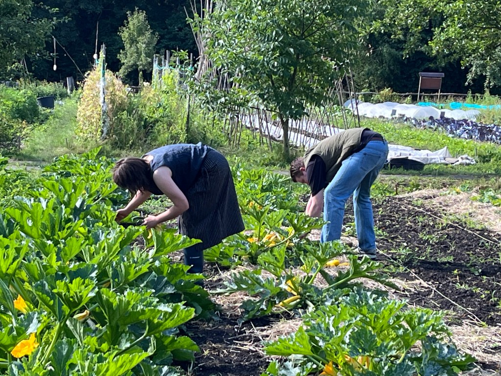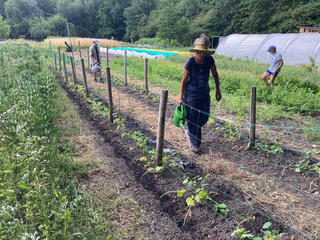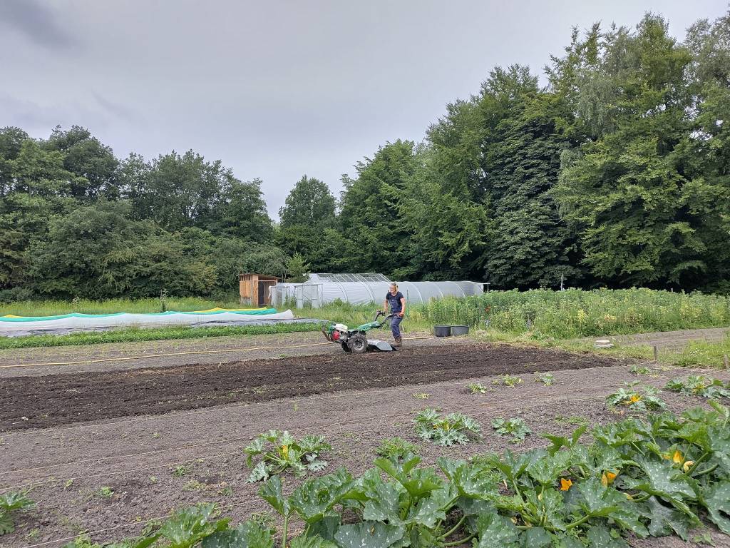 We ploegen ons langzaam door het onkruid! Ontzettend fijn dat een aantal van jullie mee komt wieden, dat helpt enorm. Ook zijn we weer wat bedden aan het schonen om meer bladgewassen neer te zetten zoals raapstelen, rucola, puntarella, postelein en snijsla. Maar 90 % van de gewassen zit in de grond! Dus het grootste zaai en plantwerk ligt al weer een paar weken achter ons. Nu nog wat onkruid wegwerken, wat zaaien en straks de pompoenen en aardappelen oogsten. En verder is het rijkdom wat de groenten en bloemen betreft!