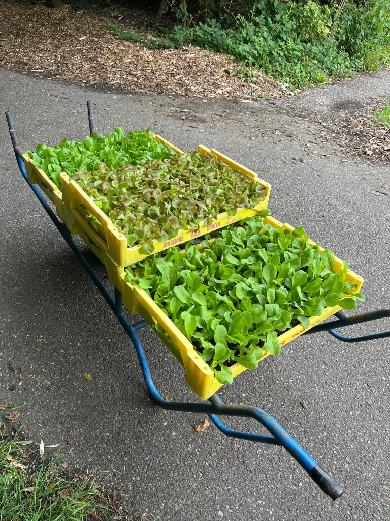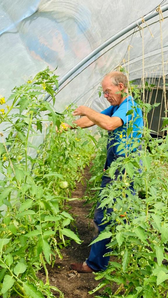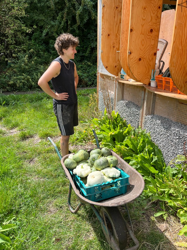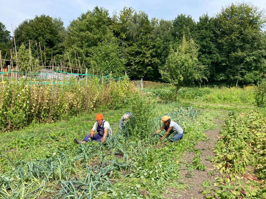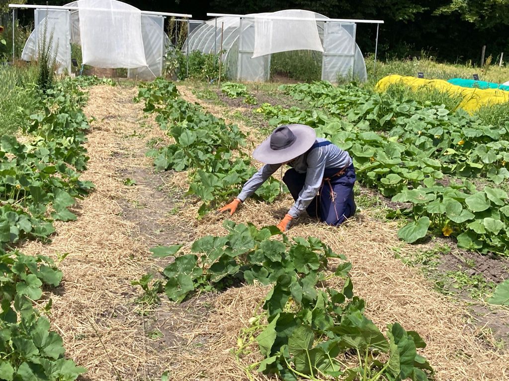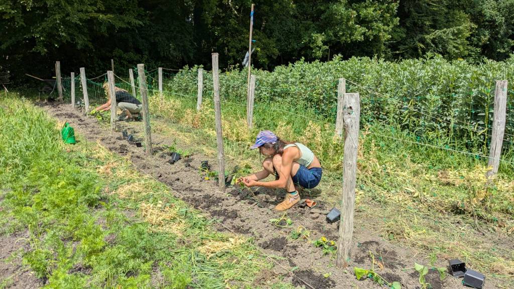 We ploegen ons langzaam door het onkruid! Ontzettend fijn dat een aantal van jullie mee komt wieden, dat helpt enorm. Ook zijn we weer wat bedden aan het schonen om meer bladgewassen neer te zetten zoals raapstelen, rucola, puntarella, postelein en snijsla. Maar 90 % van de gewassen zit in de grond! Dus het grootste zaai en plantwerk ligt al weer een paar weken achter ons. Nu nog wat onkruid wegwerken, wat zaaien en straks de pompoenen en aardappelen oogsten. En verder is het rijkdom wat de groenten en bloemen betreft!