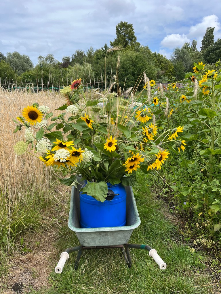 Bloemen Zonnebloemen mogen geplukt. Ongeveer 3-5 bloemen per persoon https://youtube.com/shorts/34iqrB98Ppc?si=3MzSUNvC2jBgWEW8.