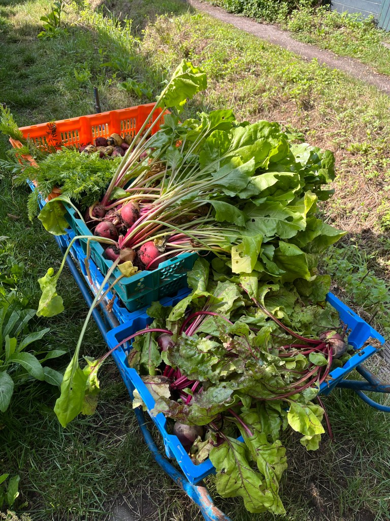 Wat een rijkdom op de akker! Vandaag had ik even geen tijd om naar de akker te gaan (ben nog traag) , dus doe het oogstbericht even uit de losse pols. Maar ik weet wel dat alle groenten uit haar voegen barsten.