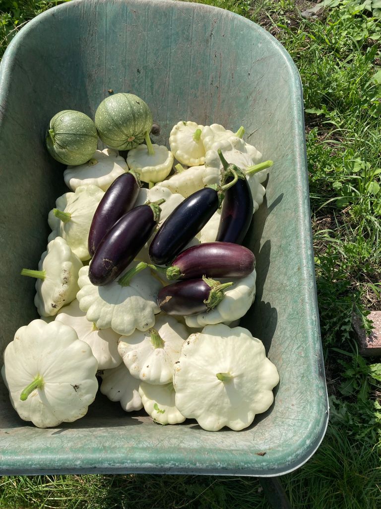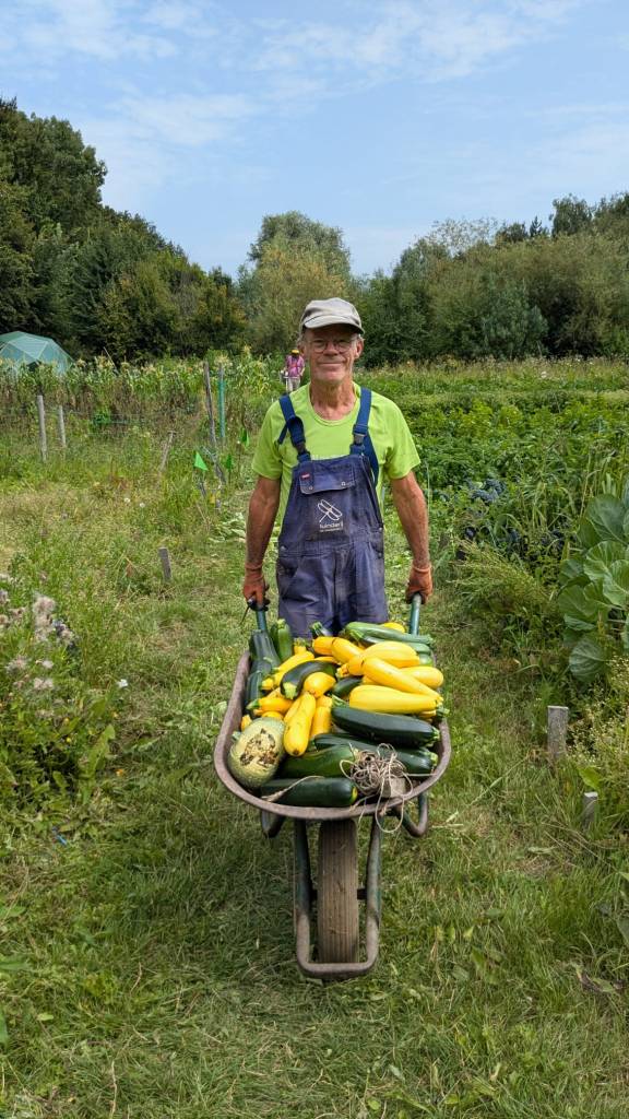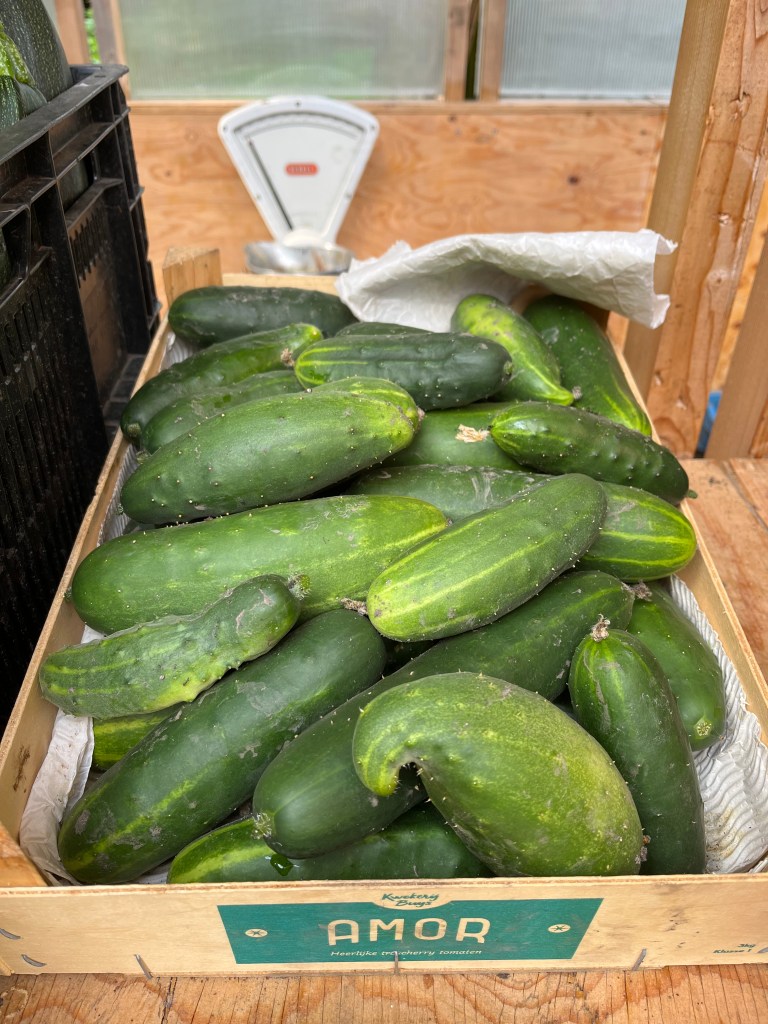 Verder is het oogstbericht ongeveer hetzelfde als vorige week. Velen van jullie zijn op vakantie dus de groenten gaan wat minder hard. Deze week gaat het team ook de knoflook binnenhalen en ws ook de gele uien, dus die kan je later in de week waarschijnlijk zo van de kraam pakken.