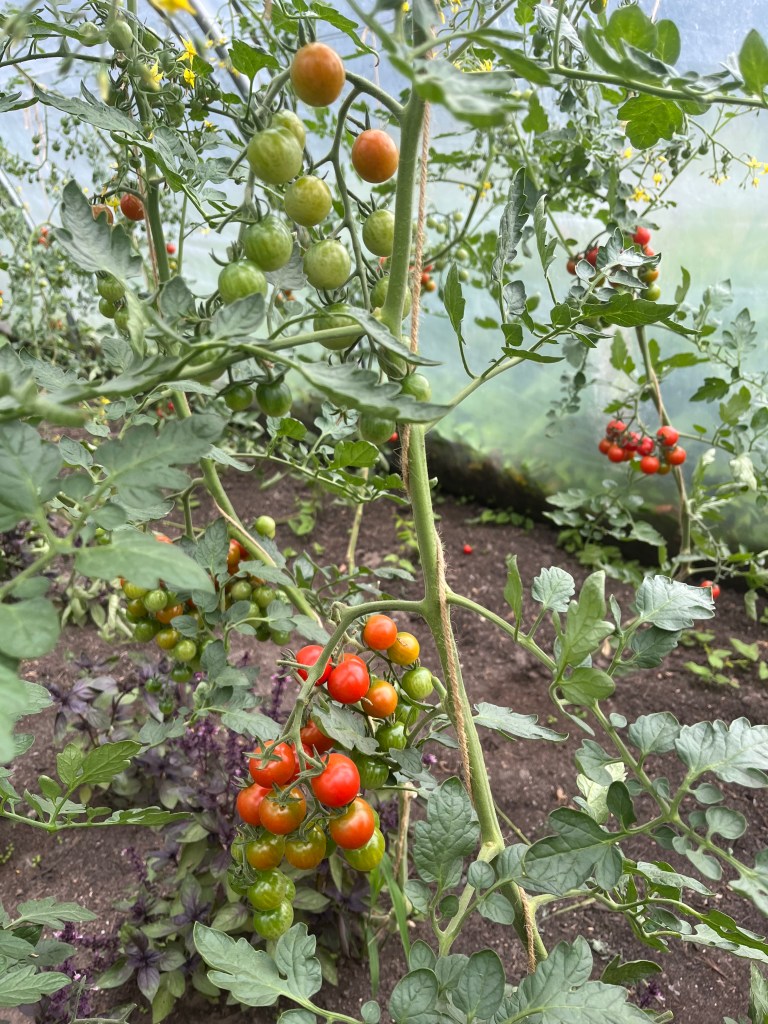 In de warme kruidentuin: rozemarijn, franse dragon, citroen thijm, gewone thijm, salie, olijfkruid, citroen verbena (voor de thee) en bonenkruid voor eigen gebruik. En in de koude kruidentuin staat munt, bieslook, marjoraan en maggikruid waar je van mag plukken. In de tunnels mogen jullie de Thaise, groene en rode basilicum toppen (zie https://youtube.com/shorts/adkGVsfa90s?si=u9OUna6dRS11wjLk ). En dus NIET de tomaten plukken!