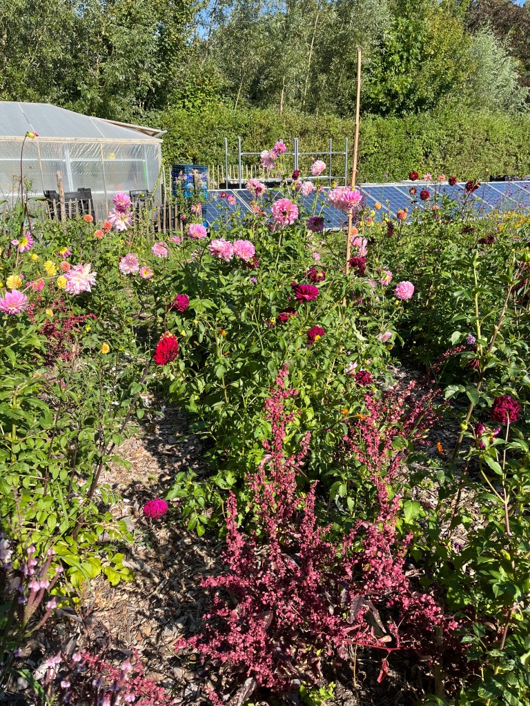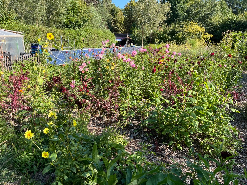 Dahlias 2-4 dahlia’s in je bosje bloemen. Niet inhalig worden. Het oogsten is wel een ding: geen dichte knoppen meesnijden of hele planten, zie https://youtube.com/shorts/o-bHed3ttBM?si=WVrUoRCiHrp4Qi6s voor de instruktie. Dahlias staan voor de heliotroop en in de bloementuin. In de bloementuin heb ik niet genoeg bordjes en groene vlaggen om bij alle dahlia’s bedden te zetten maar je mag ook in de bloementuin dahlia’s plukken