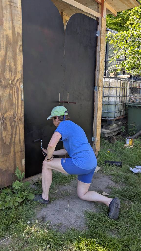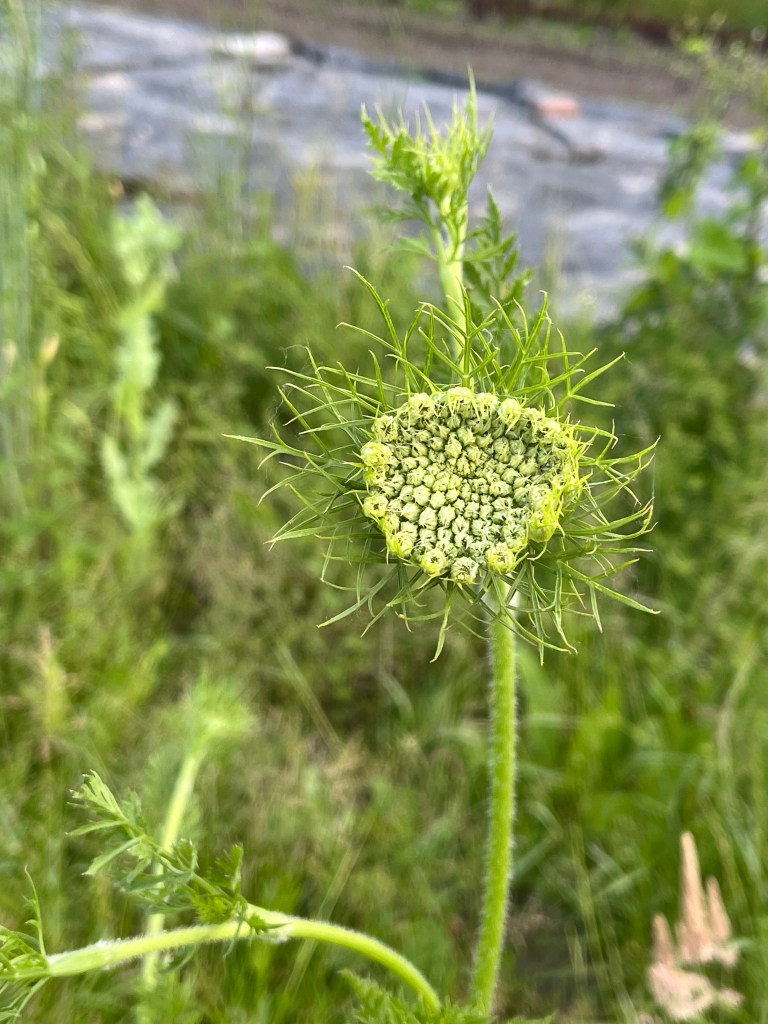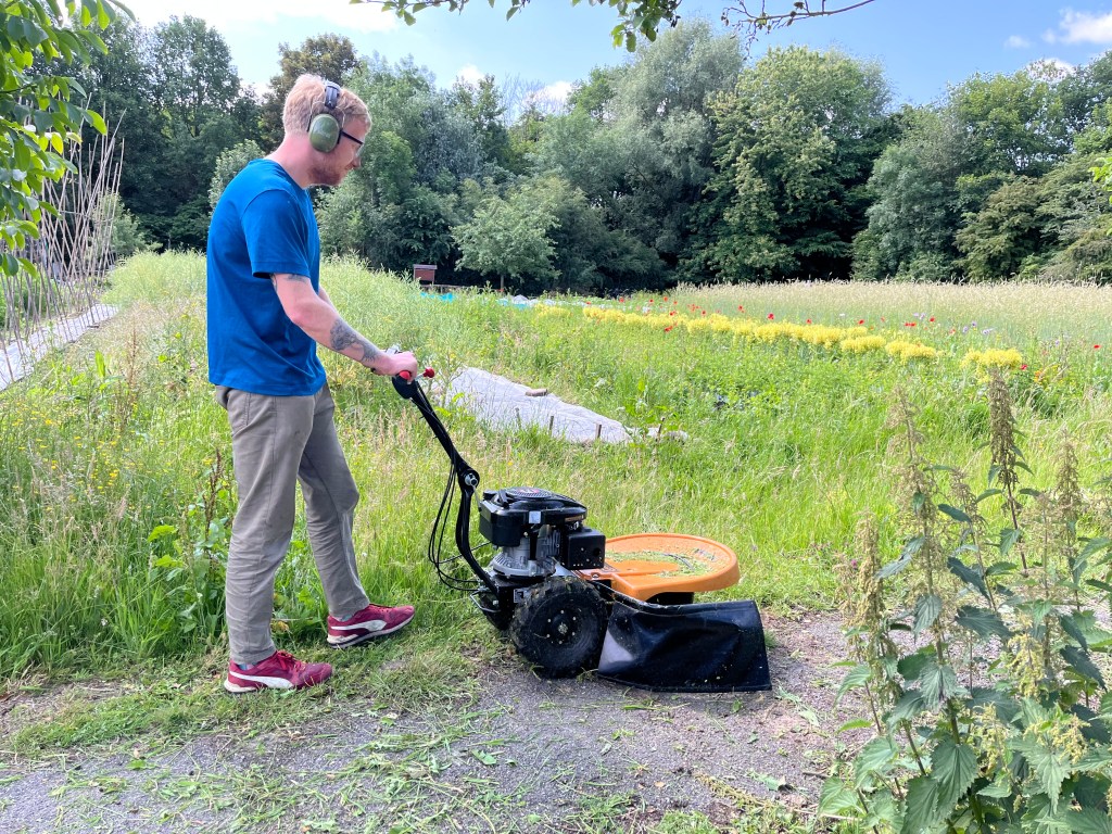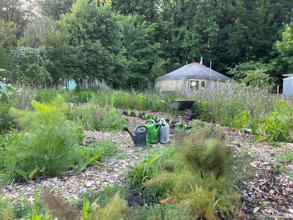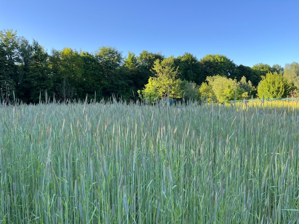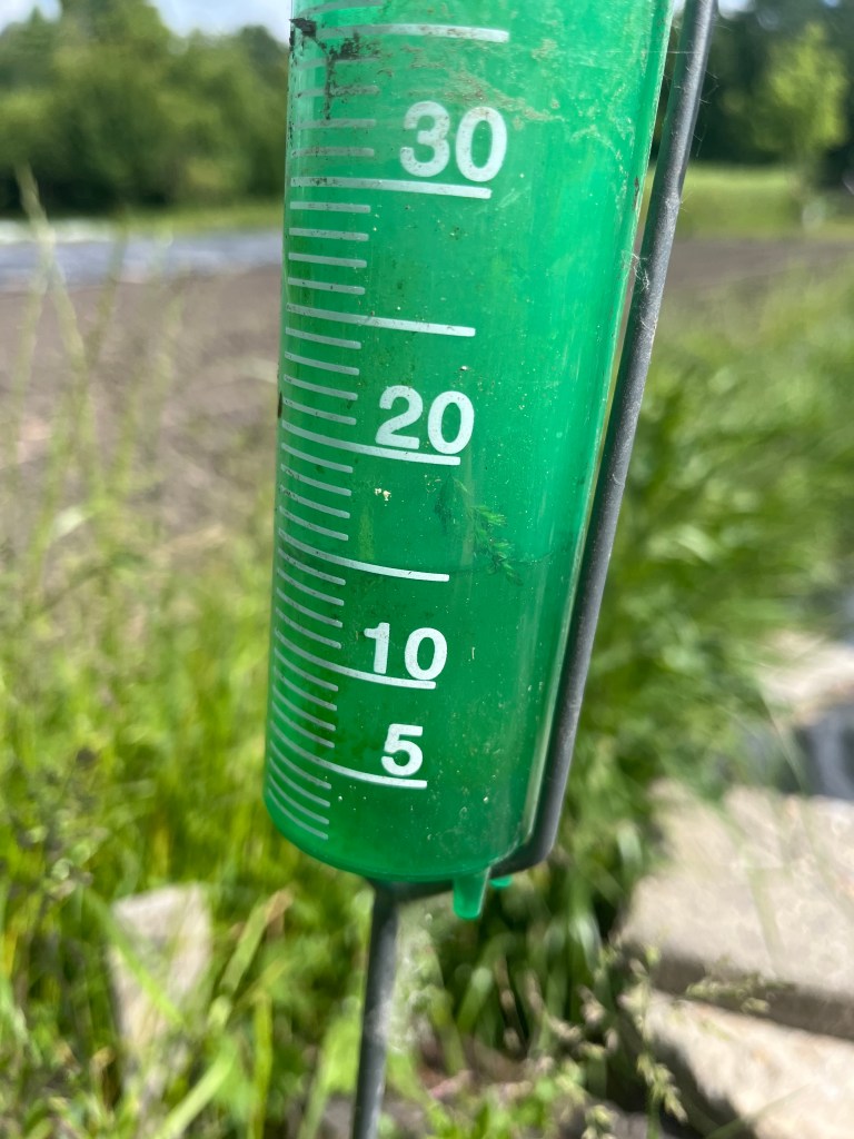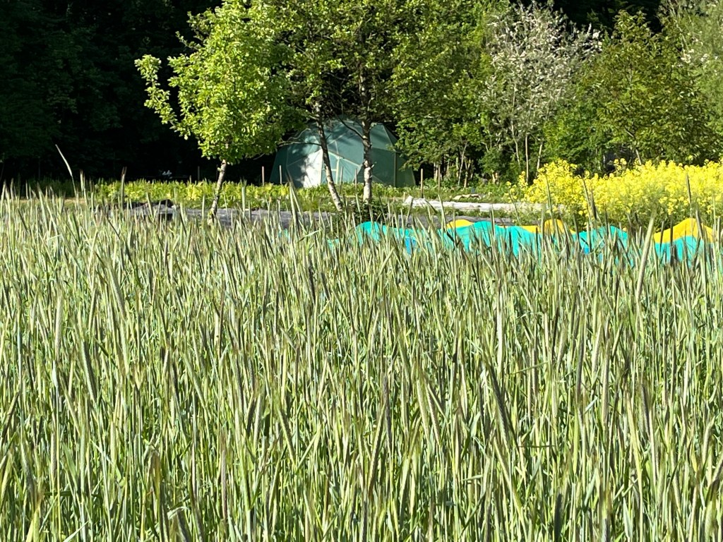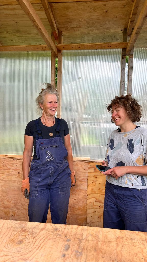 We zijn bijna weggesmolten vorige week, zo heet was het. Gelukkig was er in de vroege ochtend nog wat nachtkoelte zodat de tomaten gediefd en opgebonden konden worden. We hebben afgelopen week veel planten in de grond gezet (buiten-aubergines, rijtje zoete aardappelen, knolvenkel, radicchio, knolselderij, nieuwzeelandse spinazie) maar er ook veel uit getrokken (bijkruiden/ onkruiden/ ongewilde kruiden, zoals knopkruid bij de winterwortelen en andere gewassen). Langzaam aan met de aanhoudende wind en de hoge temperaturen wordt de bodem droger en zijn we begonnen met het nu en dan beregenen. Helaas werkt de pomp nog suboptimaal maar er wordt aan gewerkt. Voor de tussentijd duim ik voor een paar dagen regen.