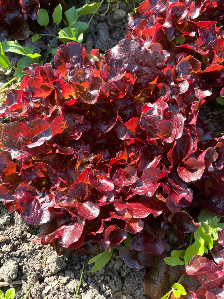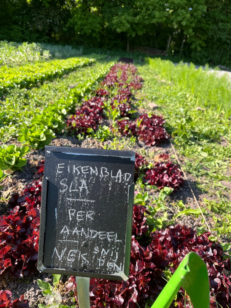 • Eikenbladsla OF Salanova (groene of rode sla) ( bed 1): nek zoeken en de hele krop afsnijden