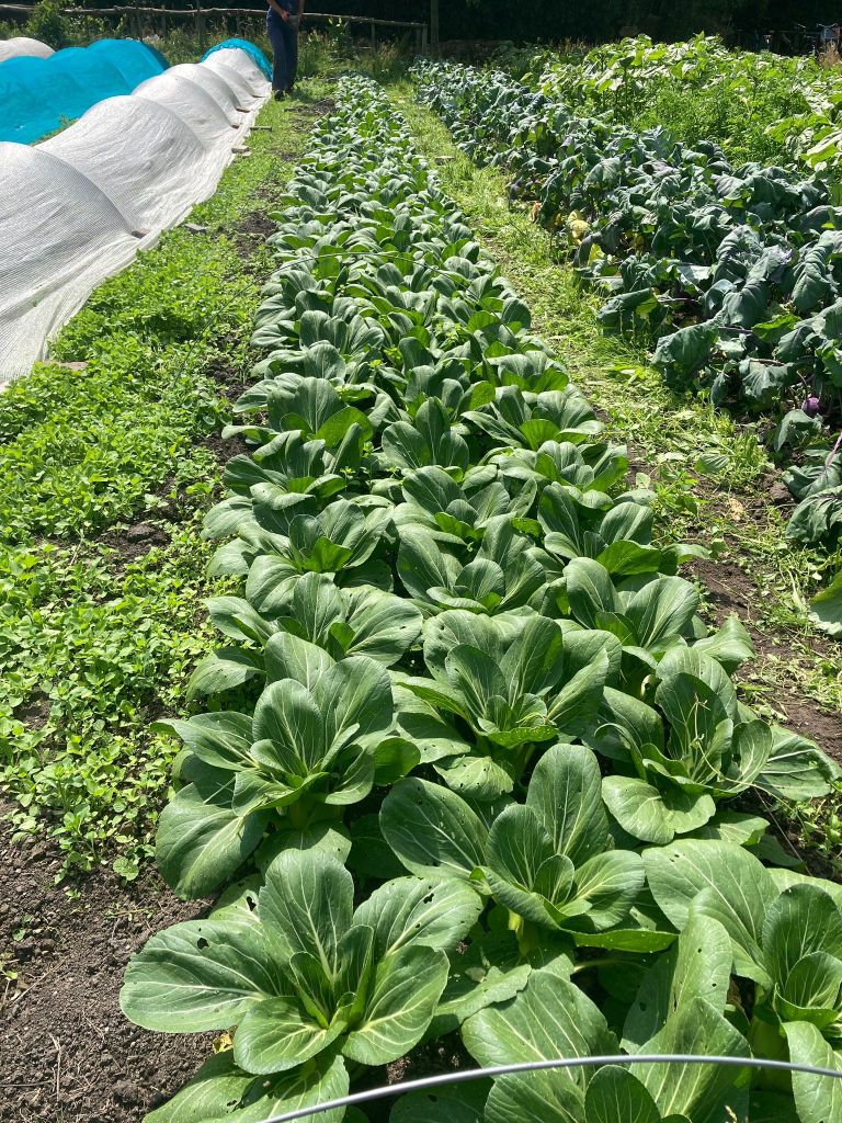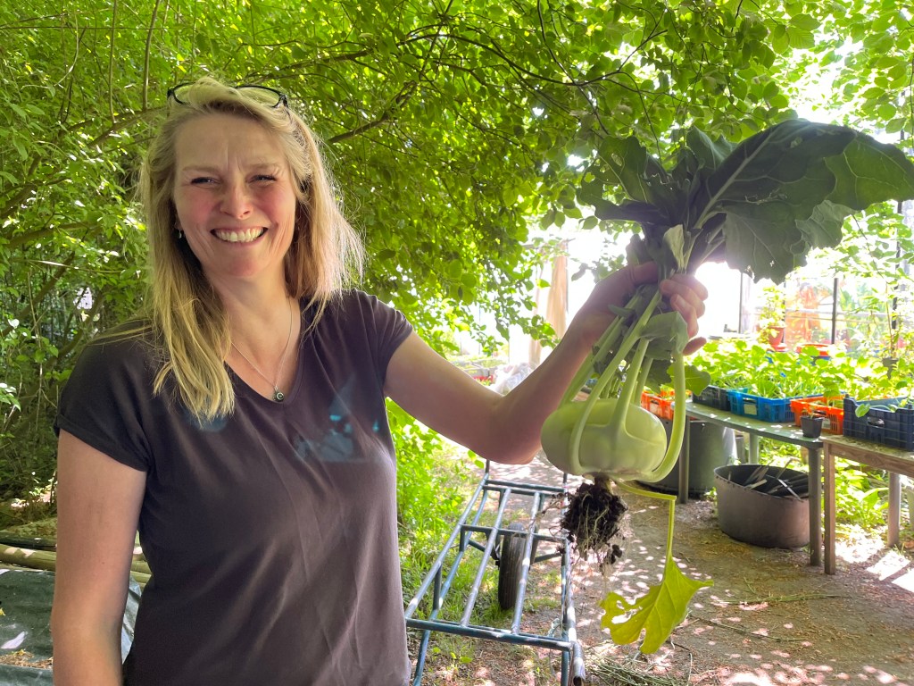 • Paksoi (bed 3) of paarse koolrabi (bed 3): 1 per persoon. Je oogst de paksoi/ koolrabi hetzelfde als de spitskool, dus zoek het nekje en snij de krop af. Zie https://youtube.com/shorts/6RMkeNHznSo?si=cnbmTnwt5e67sOxa