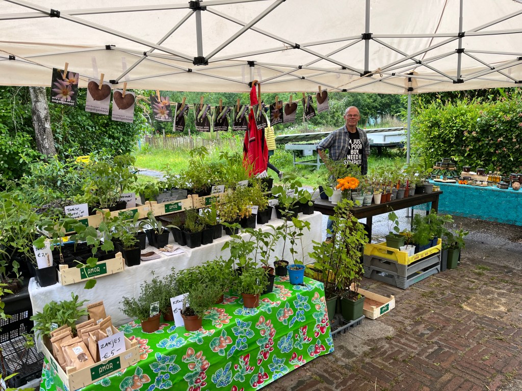Op de kraam leggen we soms wat experimenten neer zoals de Artisjok, en ook de eerstelingen van bijvoorbeeld de courgettes. Er zijn er nu elke week wat rijp maar nog te weinig voor iedereen. Als we hebben leggen we ze op de kraam en kan je ze meepakken.