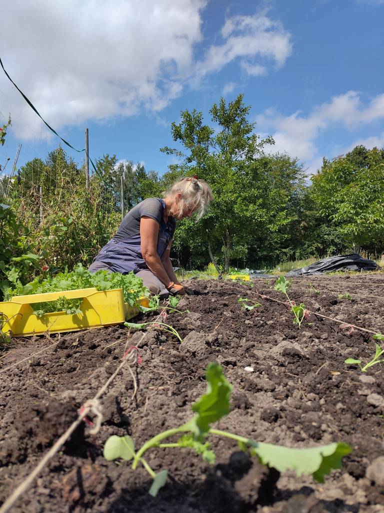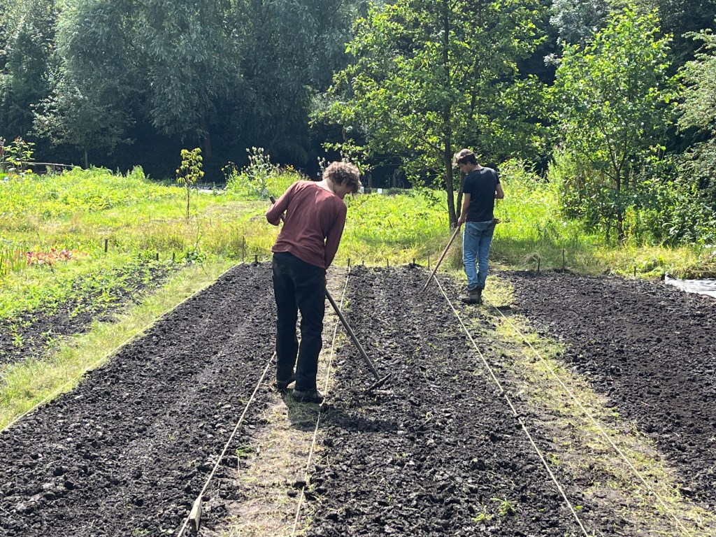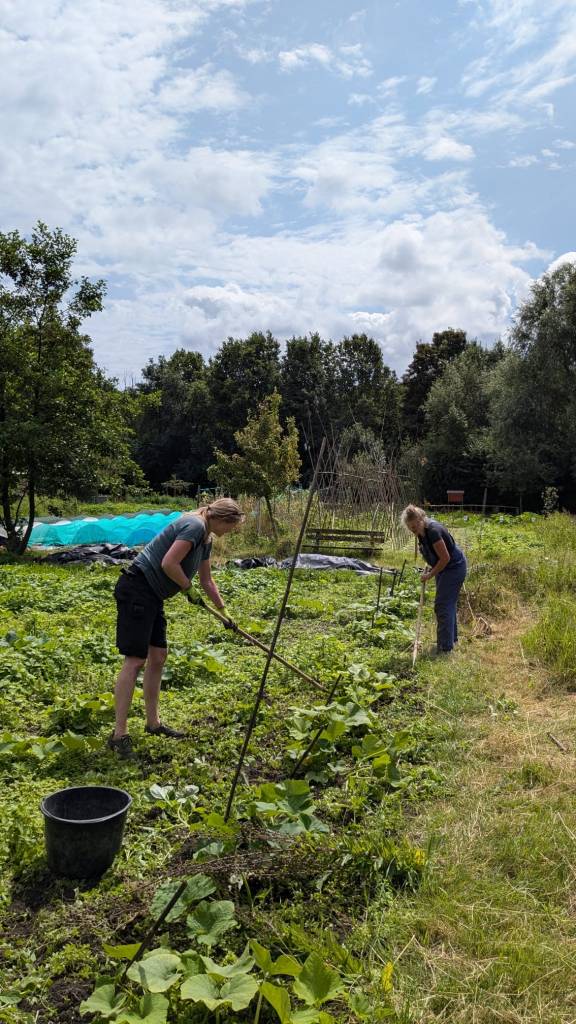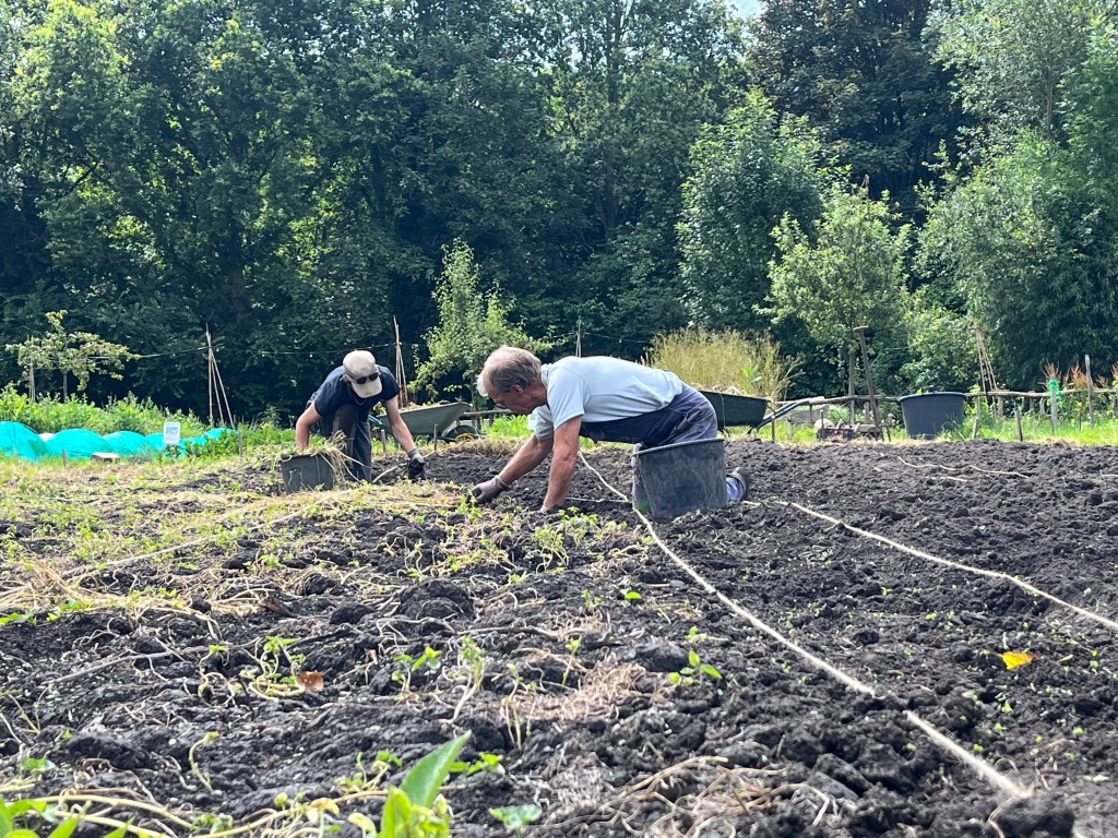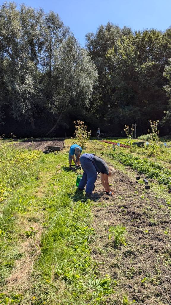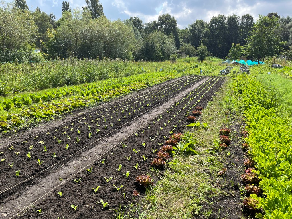 Komende week gaan we extra courgettes planten. Het is rijkelijk laat, maar we gaan het gewoon proberen omdat het weer toch niet te voorspellen is en het zomaar nog 2 maanden mooi weer kan blijven. Nu hopen dat ze voldoende daglicht krijgen. Ook gaan we spinazie zaaien, puntarella planten, veldsla en winterpostelein zaaien. En we gaan er eerste aardappels rooien deze week. Spannend altijd weer. En weer wieden natuurlijk!En kruiden stekken. Ook gaan we de kraampjes vervangen. Ze gaan steeds schever hangen en zijn toe aan vervanging. En nu krijgen we van een architectenbureau dat mooie gebouwtje dat maandenlang in het Museumpark stond. Dus op en top chic!