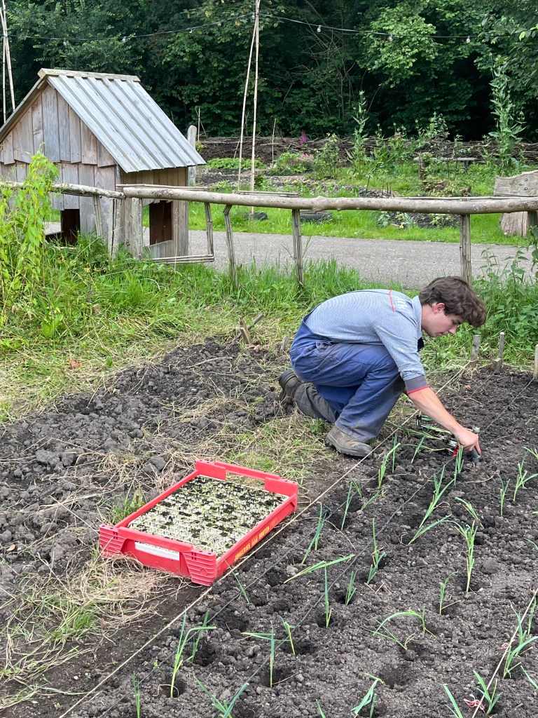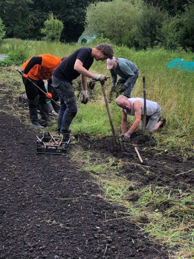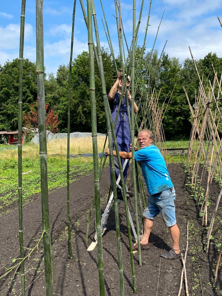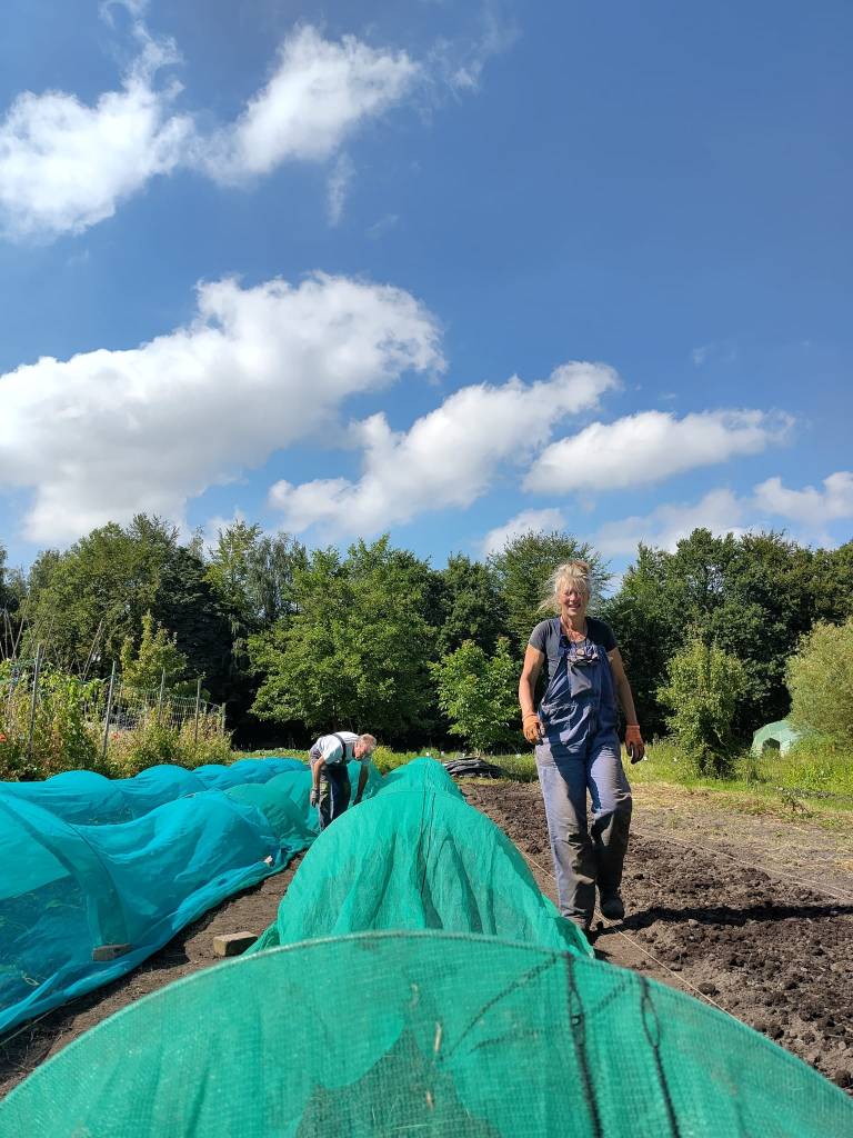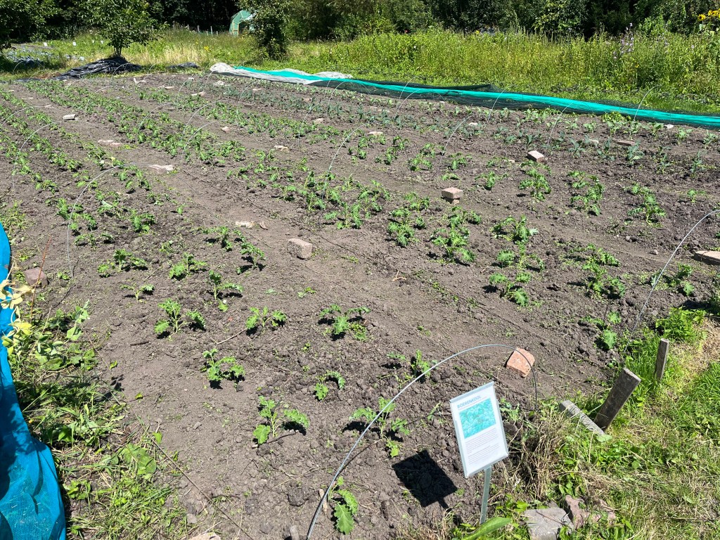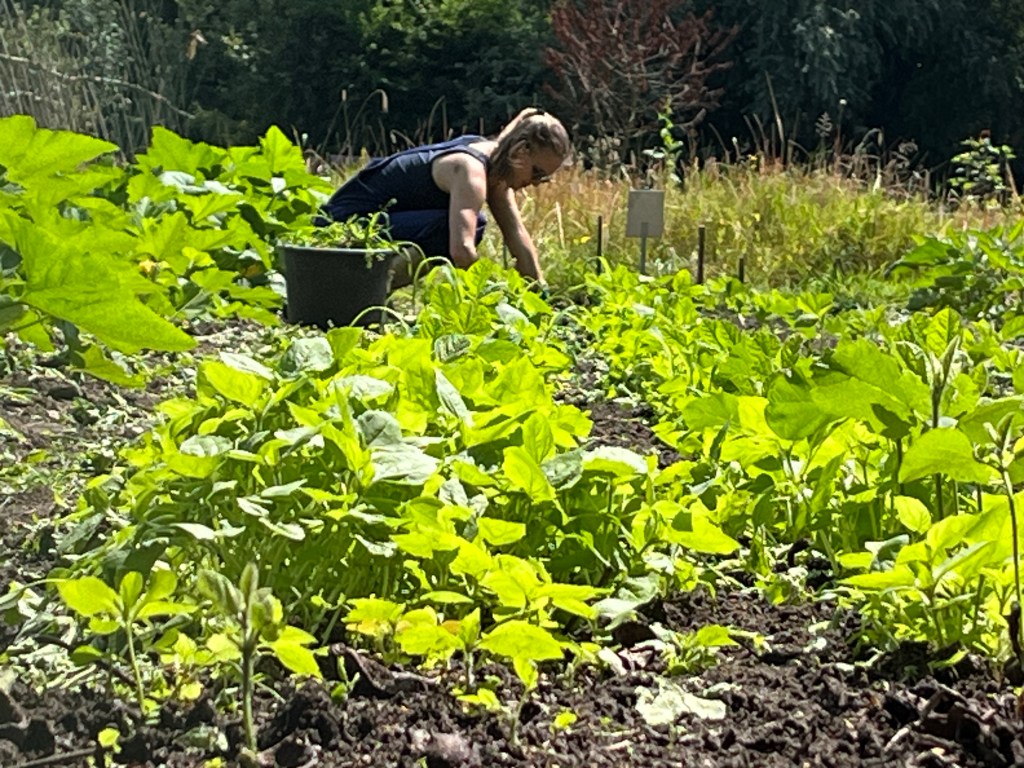 Komende week gaan we extra courgettes planten. Het is rijkelijk laat, maar we gaan het gewoon proberen omdat het weer toch niet te voorspellen is en het zomaar nog 2 maanden mooi weer kan blijven. Nu hopen dat ze voldoende daglicht krijgen. Ook gaan we spinazie zaaien, puntarella planten, veldsla en winterpostelein zaaien. En we gaan er eerste aardappels rooien deze week. Spannend altijd weer. En weer wieden natuurlijk!En kruiden stekken. Ook gaan we de kraampjes vervangen. Ze gaan steeds schever hangen en zijn toe aan vervanging. En nu krijgen we van een architectenbureau dat mooie gebouwtje dat maandenlang in het Museumpark stond. Dus op en top chic!