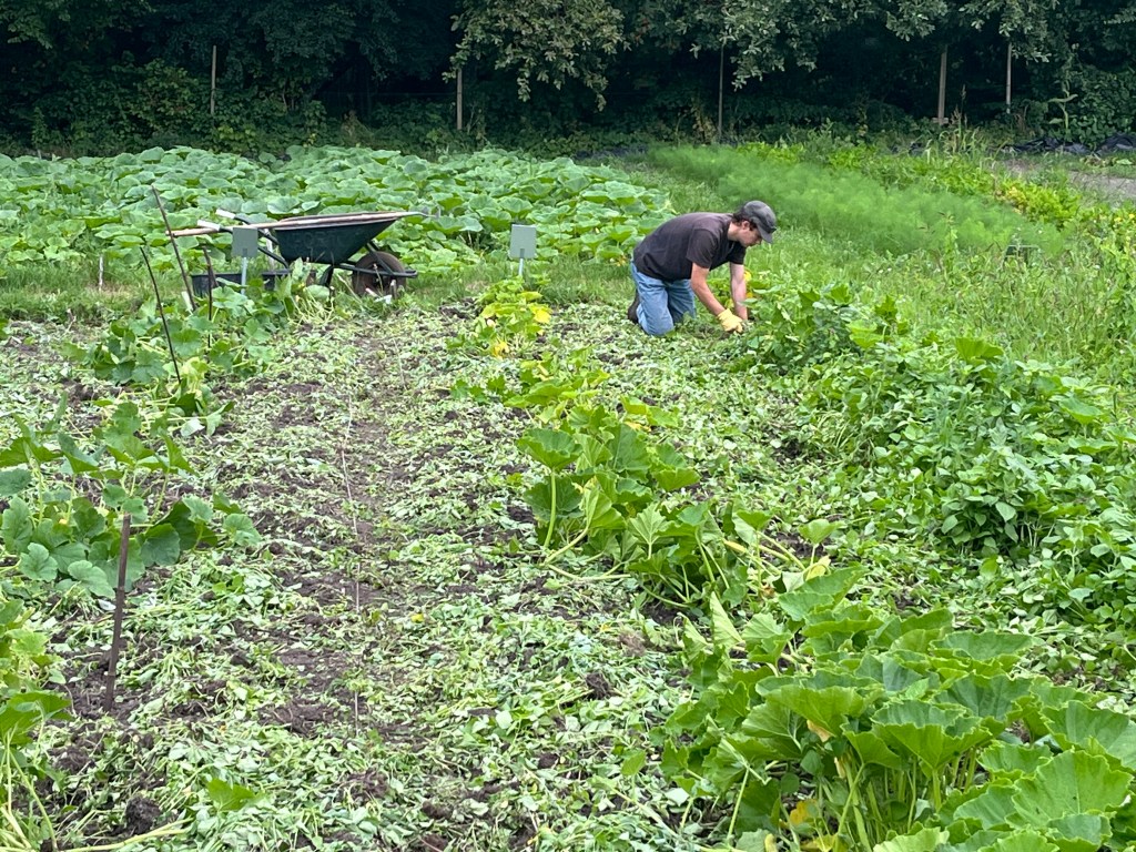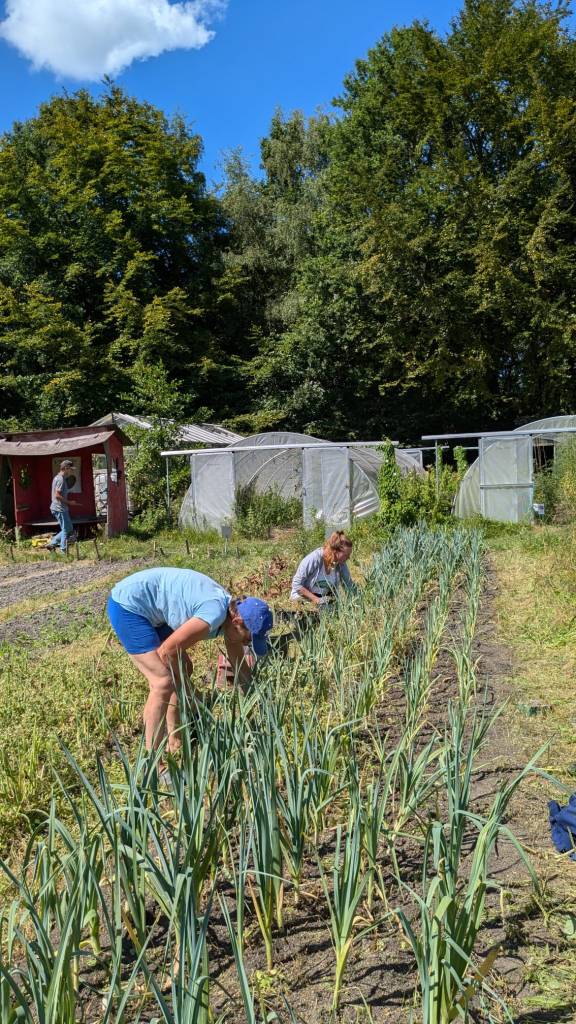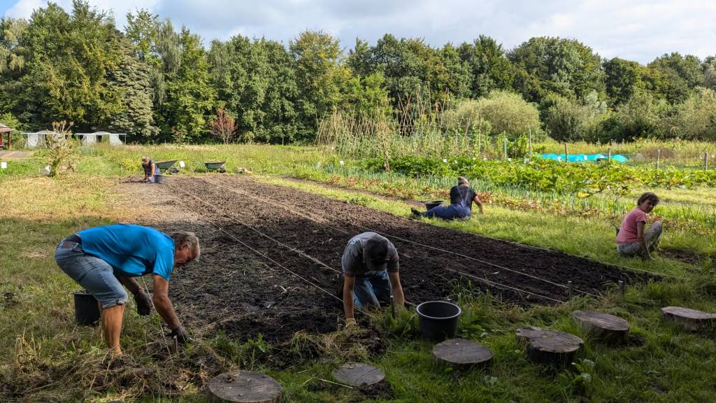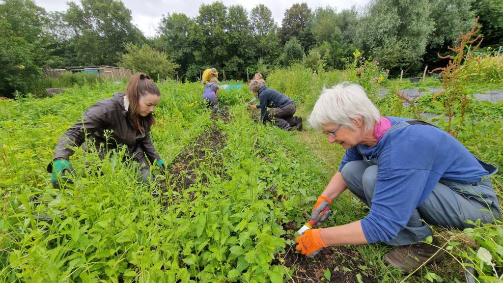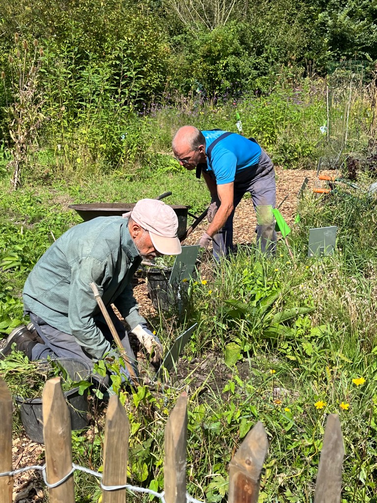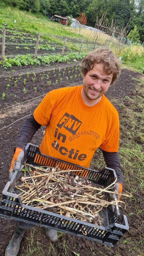 Komende week gaan we extra courgettes planten. Het is rijkelijk laat, maar we gaan het gewoon proberen omdat het weer toch niet te voorspellen is en het zomaar nog 2 maanden mooi weer kan blijven. Nu hopen dat ze voldoende daglicht krijgen. Ook gaan we spinazie zaaien, puntarella planten, veldsla en winterpostelein zaaien. En we gaan er eerste aardappels rooien deze week. Spannend altijd weer. En weer wieden natuurlijk!En kruiden stekken. Ook gaan we de kraampjes vervangen. Ze gaan steeds schever hangen en zijn toe aan vervanging. En nu krijgen we van een architectenbureau dat mooie gebouwtje dat maandenlang in het Museumpark stond. Dus op en top chic!