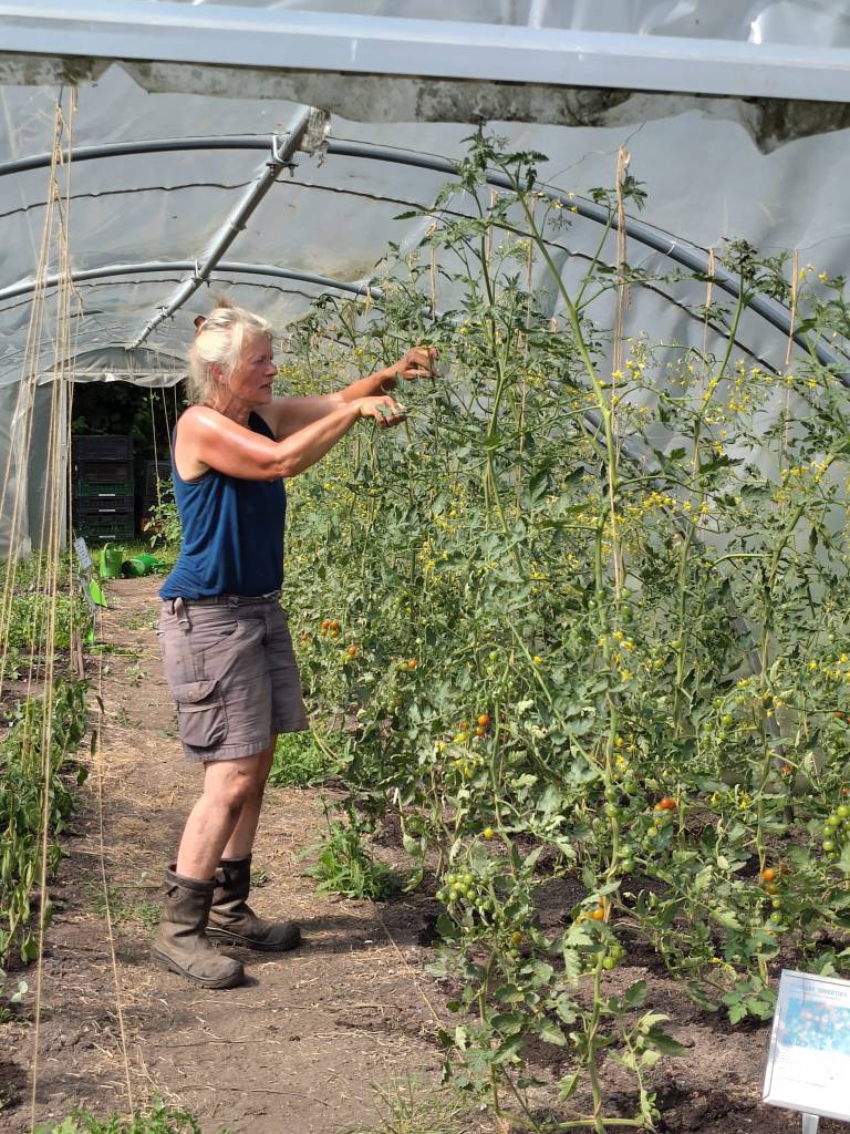 Groenten Bindsla (1) Gele/ groene courgette (3) Laatste komkommertjes (5) Nieuwzeelandse spinazie (6) Stamslaboon (8) Spekbonen Blauhilde en Neckargold (8) Paarse koolrabi (9) Zomerprei (11) Laatste tomaten (kraam/tunnels) laatste zomerpostelein (17) Groenselder (19) Andijvie (19) Knolvenkel (19) Roodlof (19) Rode eikenbladsla (19) Uien en knoflook (kraam).