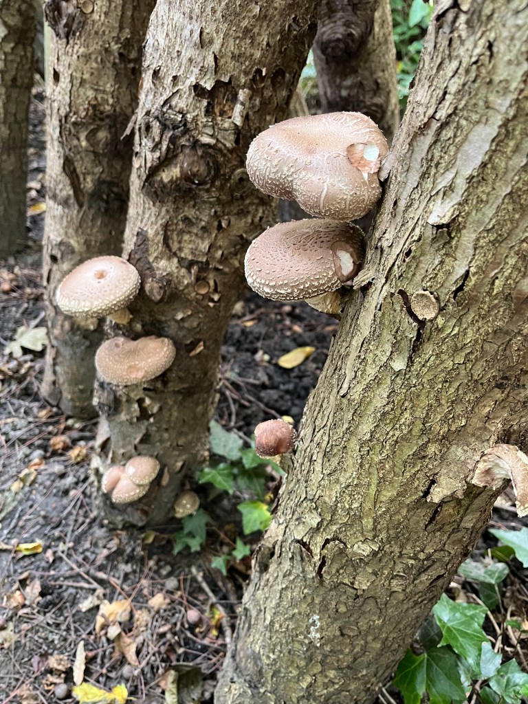 Eigenlijk vermoedde ik dat ik de shiitakes te verwaarloosd had, te weinig water had gegeven en dat de meeste stammen niet meer zouden geven. Niets is minder waar. Zelfs stammen die vorig jaar niets gaven, zijn lekker aan het produceren. Daar word ik dan weer blij van, van zulke verrassingen!
