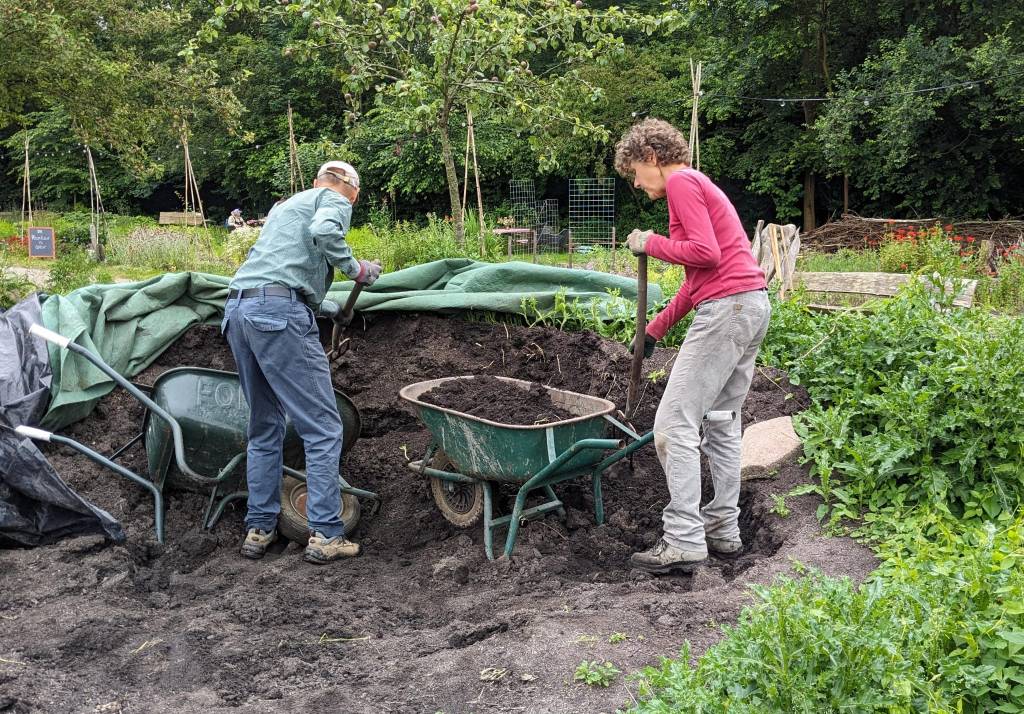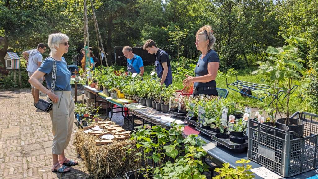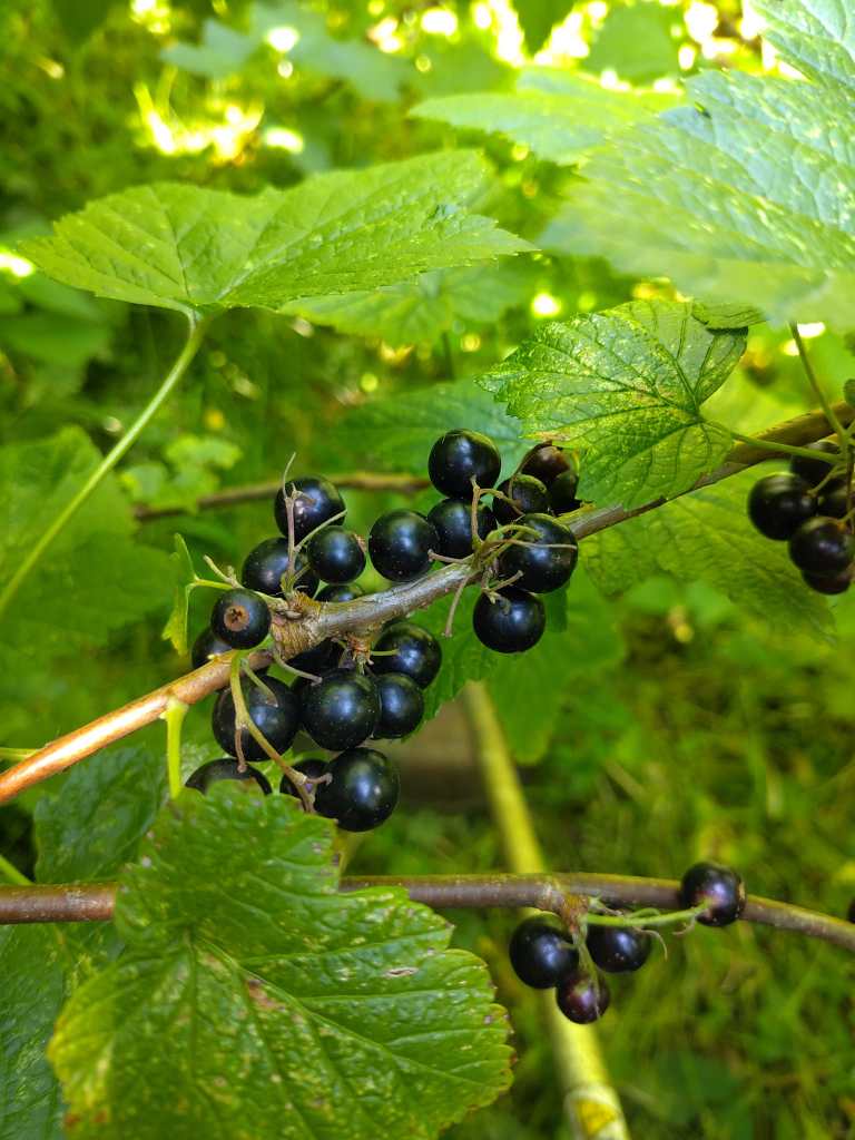 - -Zwarte bessen (fruittuin): Oogst de rijpe zwarte bessen voorzichtig en laat onrijpe aan de struik zitten. Wees in het begin spaarzaam et plukken zodat iedereen wat heeft.