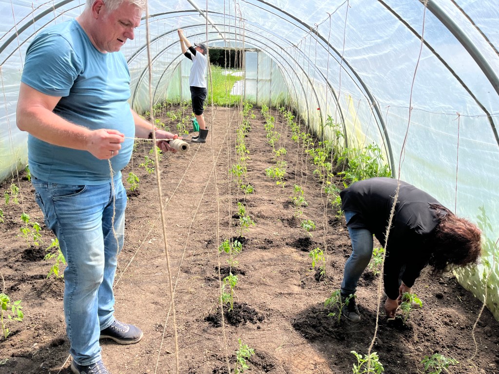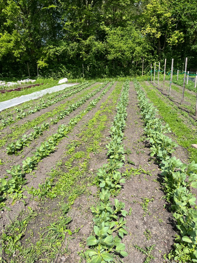 - -Tuinbonen op de achterste twee bedden (20) portie per persoon 10-15 peulen, zoek de grote peulen onderaan de planten en voel of ze dik /gevuld zijn, dan: voorzichtig met je nagel of schaar afknippen https://youtube.com/shorts/o-pC_mxrlMI?si=5OHbqj51hGOQScEt