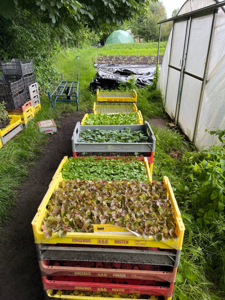 Deze week zetten we deze trend door en gaan er extra aubergines , de knolselderij en de knolvenkel, de grond in en we gaan de wortels nogmaals zaaien op een schoner bed, een extra bed met winterwortels, en de edamame boontjes moeten de grond in, en de paprikas natuurlijk.